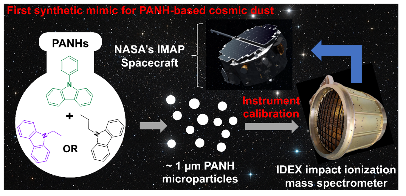 Very recently, we have used the LV1 to design new synthetic mimics for cosmic dust particles as part of a Leverhulme Trust grant. More specifically, we have examined binary mixtures of N-substituted carbazoles, which are simple examples of nitrogen-based polycyclic aromatic hydrocarbons (PANHs) and have relatively low melting points. By working at the eutectic composition, N-phenylcarbazole can be processed with either N-ethylcarbazole or N-propylcarbazole via high-shear homogenisation to afford coarse molten hybrid droplets. Passing this hot emulsion through our LV1 microfluidiser at 55 °C produces much finer droplets of around 1 µm diameter. On cooling, hybrid microparticles are obtained that have a constant chemical composition. Once coated with an ultrathin overlayer of an electrically conductive polymer (polypyrrole), these PANH microparticles can acquire sufficient surface charge to enable their acceleration up to the hypervelocity regime (> 1 km s-1). Our collaborators at the University of Colorado use their $5 M state-of-the-art dust accelerator to fire such microparticles into a gold target. Such high-energy impacts generate an ionic plasma that can be analysed by mass spectrometry and serves as a characteristic ‘fingerprint’ for our original microparticles. Our joint study – which contains some rather unexpected findings –  has just been published in a high-profile scientific journal (see M. Zeng et al., J. Am. Chem. Soc. 2026, 148, in press; https://pubs.acs.org/doi/10.1021/jacs.5c18079). Our long-term objective is the rigorous calibration of a cosmic dust detector known as IDEX that is deployed on the IMAP spacecraft, which is situated at a fixed point between the Earth and the Sun. These fundamental laboratory studies are essential for the reliable interpretation of mass spectra anticipated for the IDEX detector when it encounters interplanetary and interstellar organic dust particles over the next five years. So our LV1 microfluidiser is expected to play a vital role in refining our understanding of the chemical composition of our solar system.” Prof. Steve Armes from the University of Sheffield.
